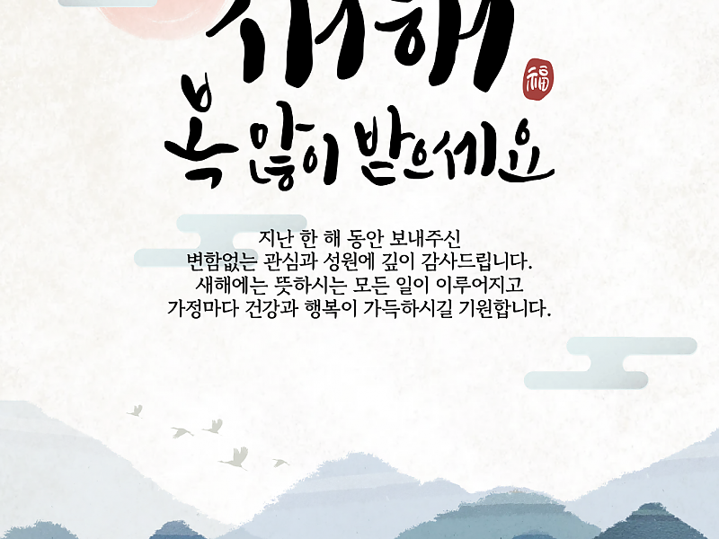 지난 한 해 동안 보내주신 변함없는 관심과 성원에 깊이 감사드립니다. 새해에는 뜻하시는 모든 일이 이루어지고 가정마다 건강과 행복이 가득하시길 기원합니다.