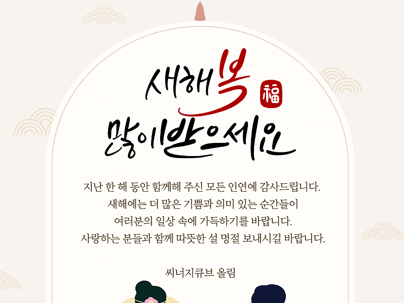 지난 한 해 동안 함께해 주신 모든 인연에 감사드립니다. 새해에는 더 많은 기쁨과 의미 있는 순간들이 여러분의 일상 속에 가득하기를 바랍니다. 사랑하는 분들과 함께 따뜻한 설 명절…